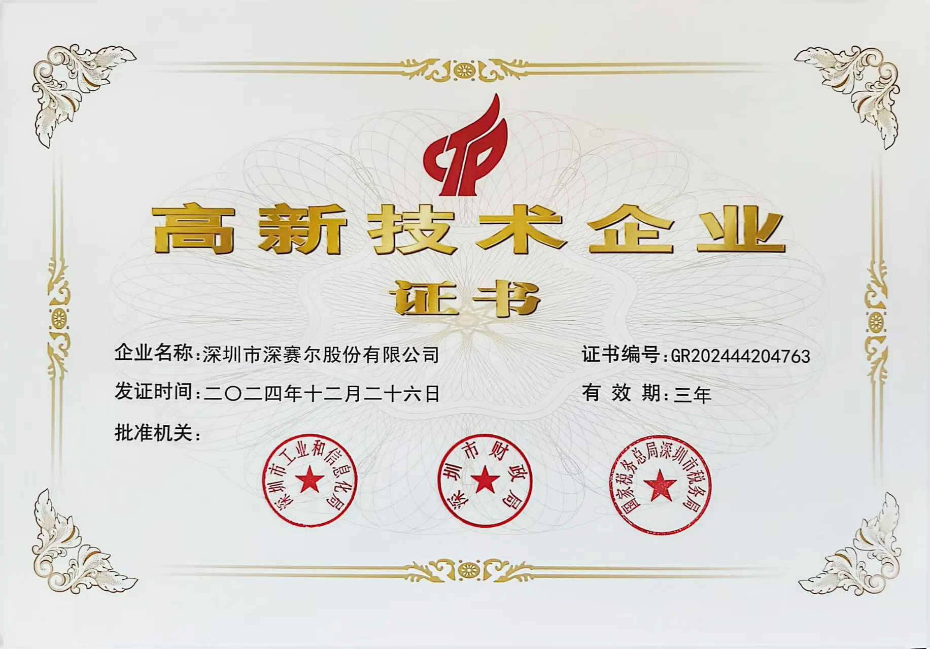 高新技術企業證書
