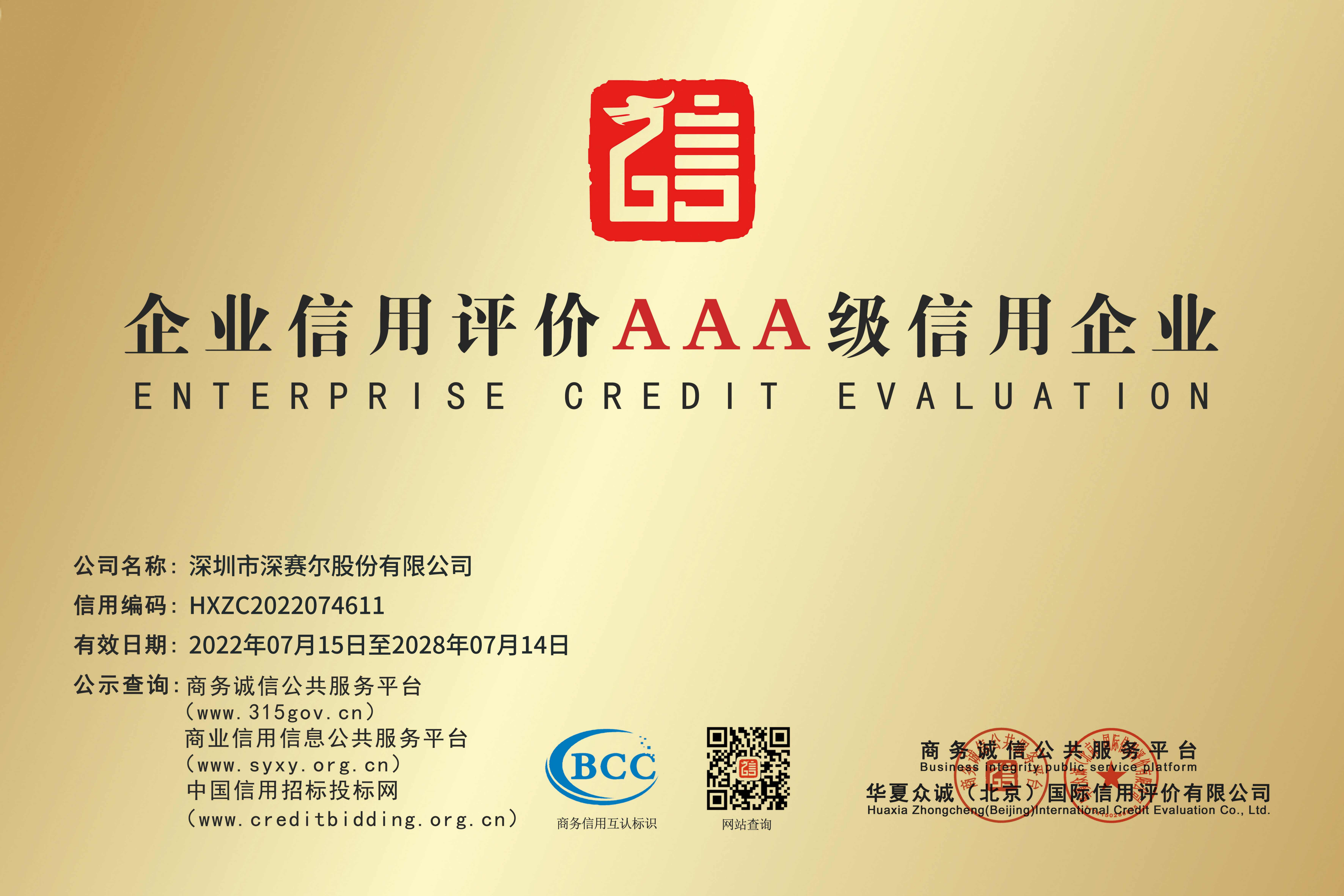企業信用評價3A級信用企業