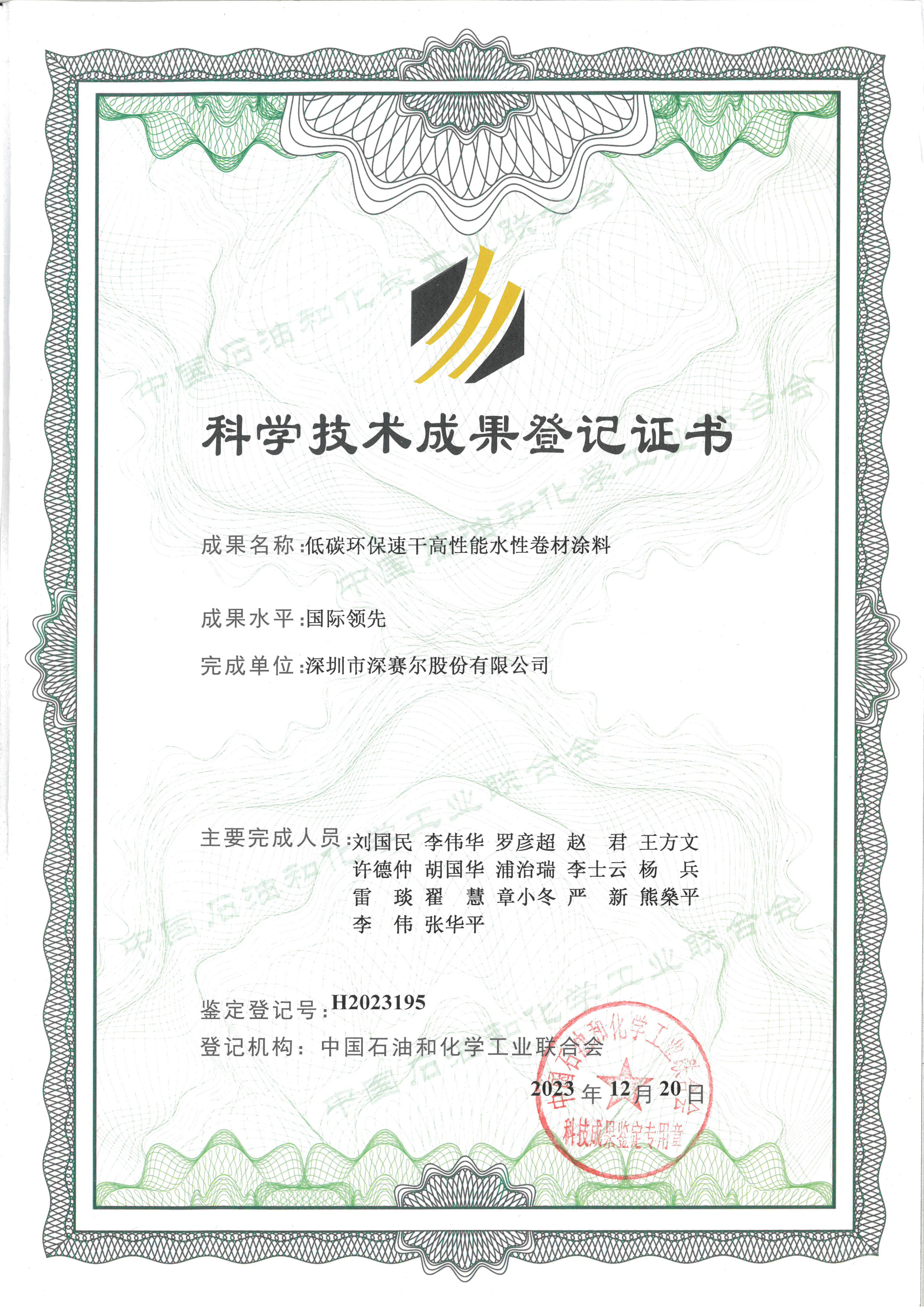 科學技術成果登記證書
